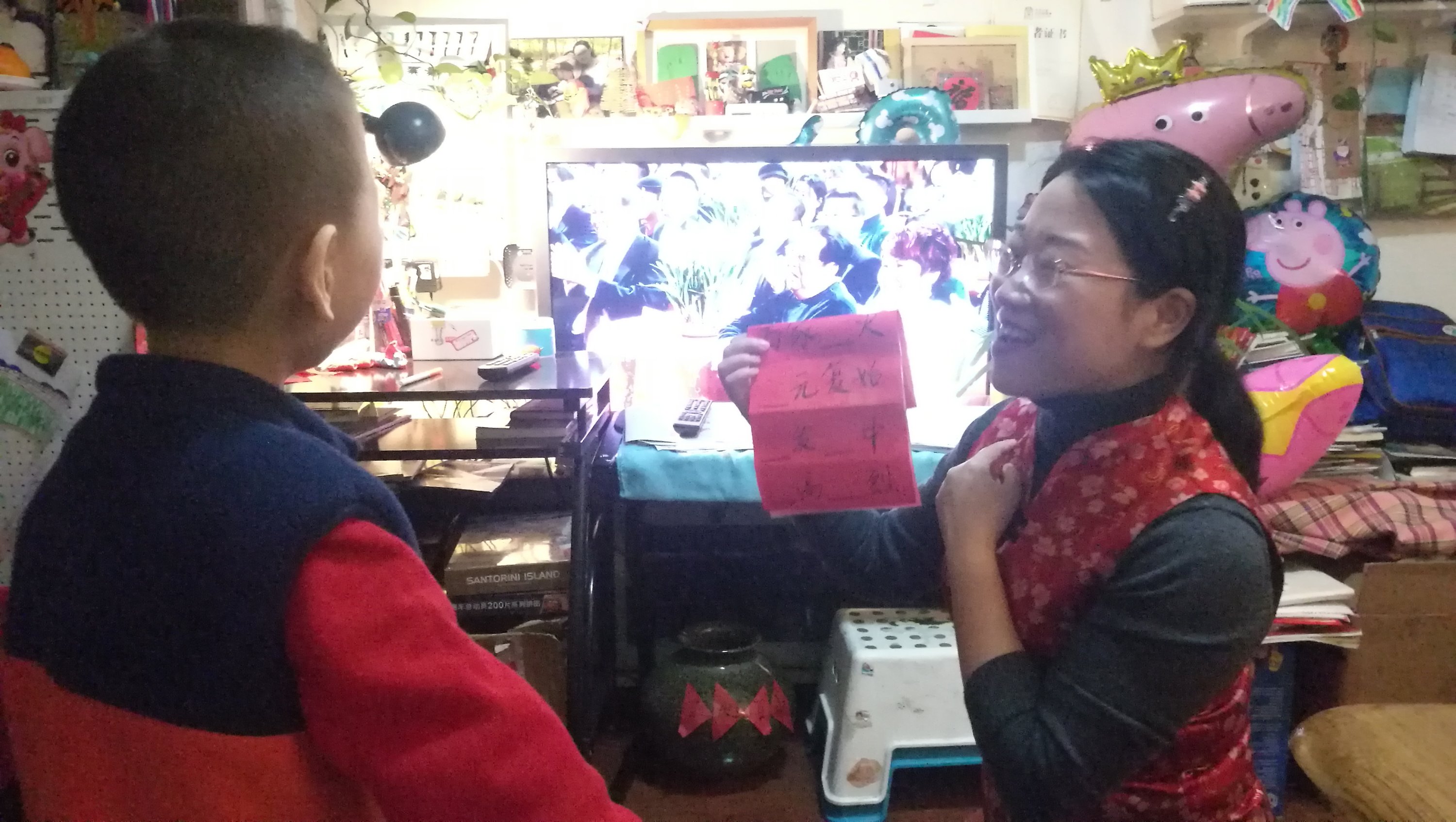 爸爸一边写一边说,我们现在想着治他,他明天就得还治其人之身了。果不其然,大年初一一大早乐乐就起床张罗他主导的游园会了……